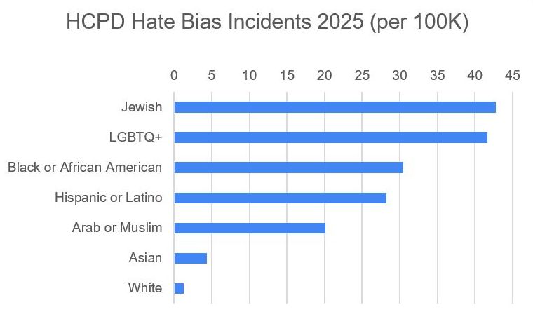 Recent Howard County Police Department (HCPD) hate-bias reporting shows that Jewish residents are the most frequently targeted group in Howard County on a per-capita basis, surpassing every other protected class. This isn’t a perception problem. It’s a measurable reality.